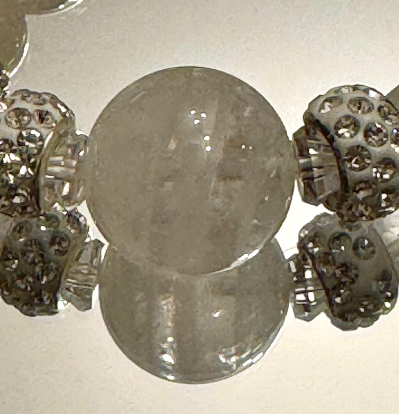 18mmのアイリスクォーツ(スーパーファントム)と、水晶、ミルキークォーツ、ムーンストーン、ローズクォーツ、モルガナイトを組み合わせています。